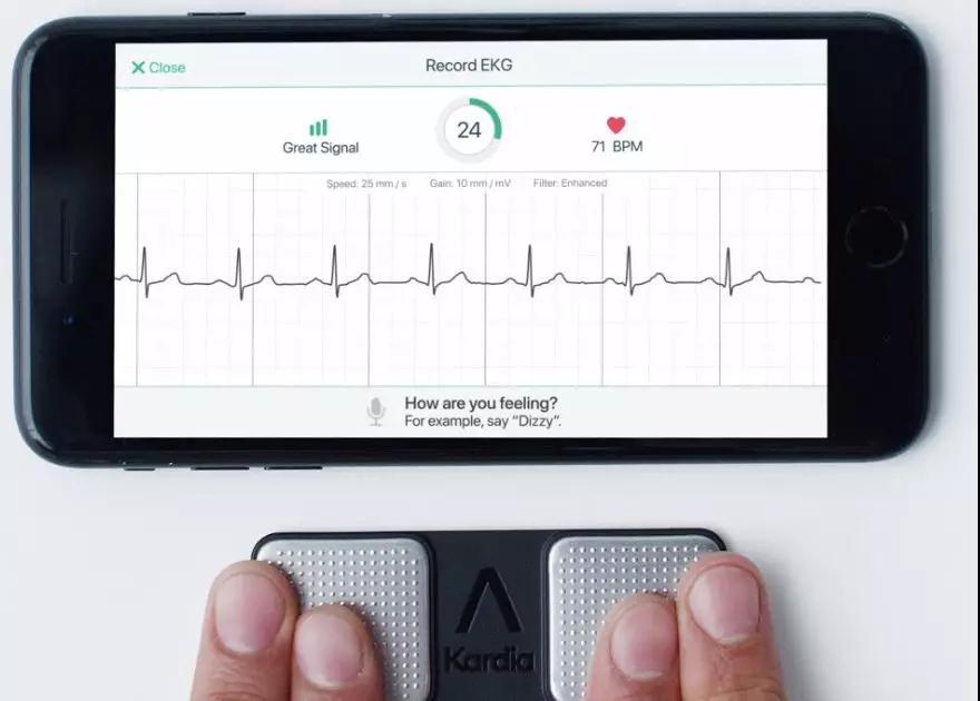 高鉀血癥如果得不到不及時(shí)治療會(huì)導(dǎo)致威脅生命的心律問(wèn)題。目前進(jìn)行血鉀水平檢測(cè)需要去醫(yī)療機(jī)構(gòu)驗(yàn)血。而AliverCor的KardiaK軟件,利用人工智能通過(guò)對(duì)心電圖(EKG)數(shù)據(jù)進(jìn)行運(yùn)算來(lái)檢測(cè)血鉀水平升高,無(wú)需患者血液就可以檢測(cè)出血鉀水平是否升高。
