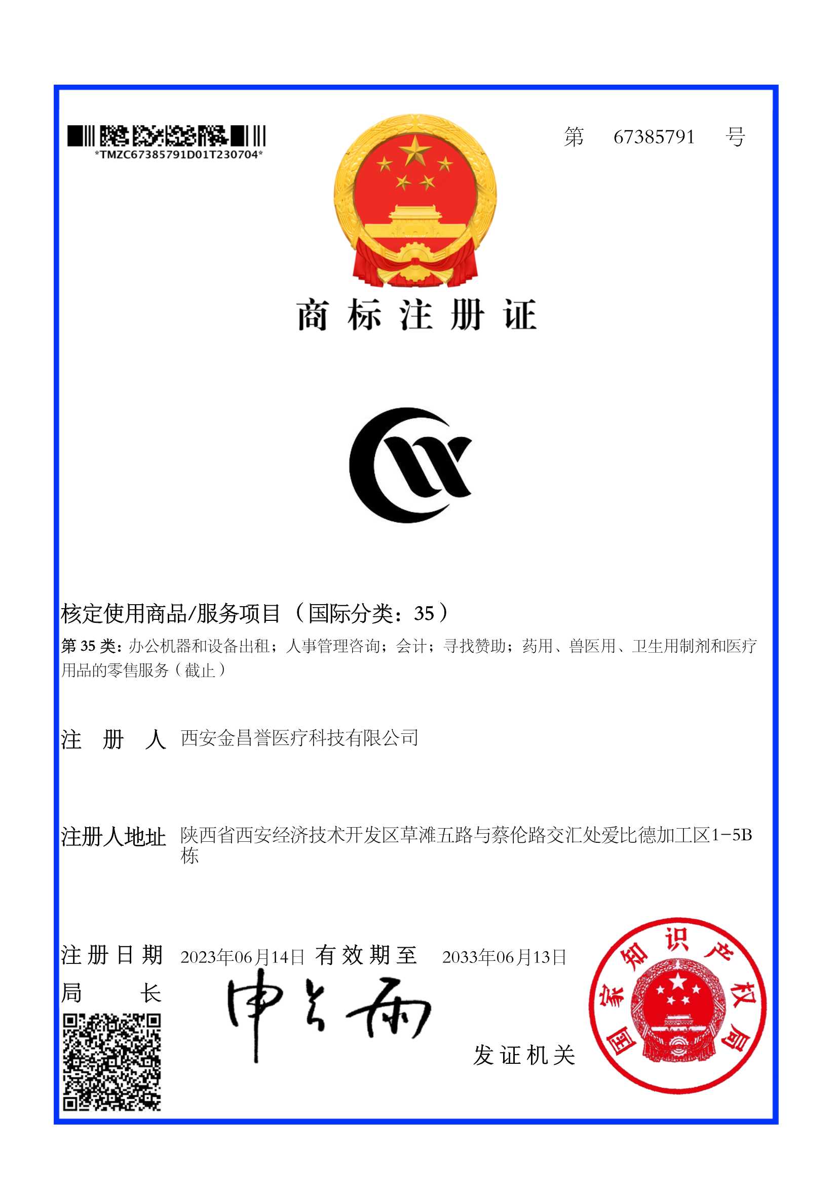 熱烈祝賀金昌譽醫(yī)療商標(biāo)注冊證下發(fā)